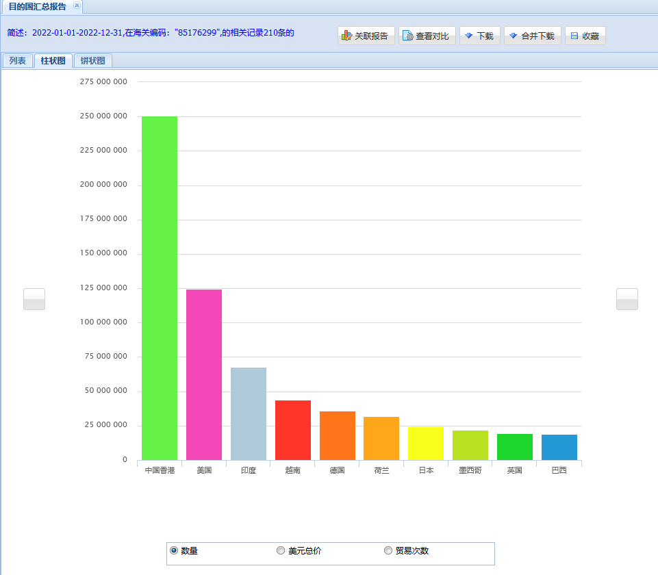 1. 分析无线耳机 HS:85176299中国出口至全球,目的国TOP10: