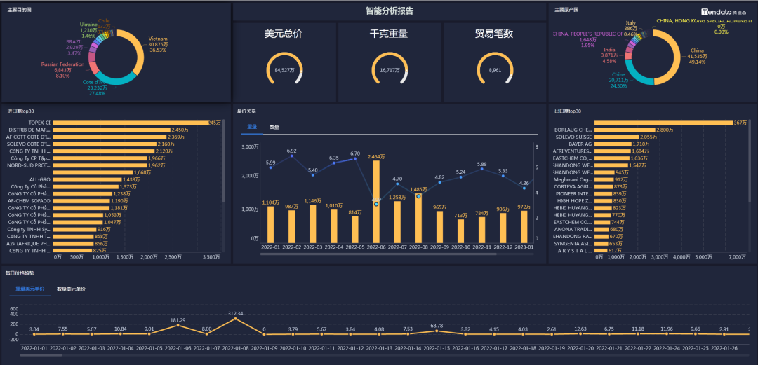 royal皇家88(集团) 外贸通能够一键查询和追踪某类产品的全球交易详情,并体现整个供应链的采购供应,最大程度展示整个贸易网的情况,基于交易数据的统计分析,多维度分析行业、产品市场趋势,助力企业洞察市场变化、把握不同市场采购淡旺季,从而准确定位目标市场。