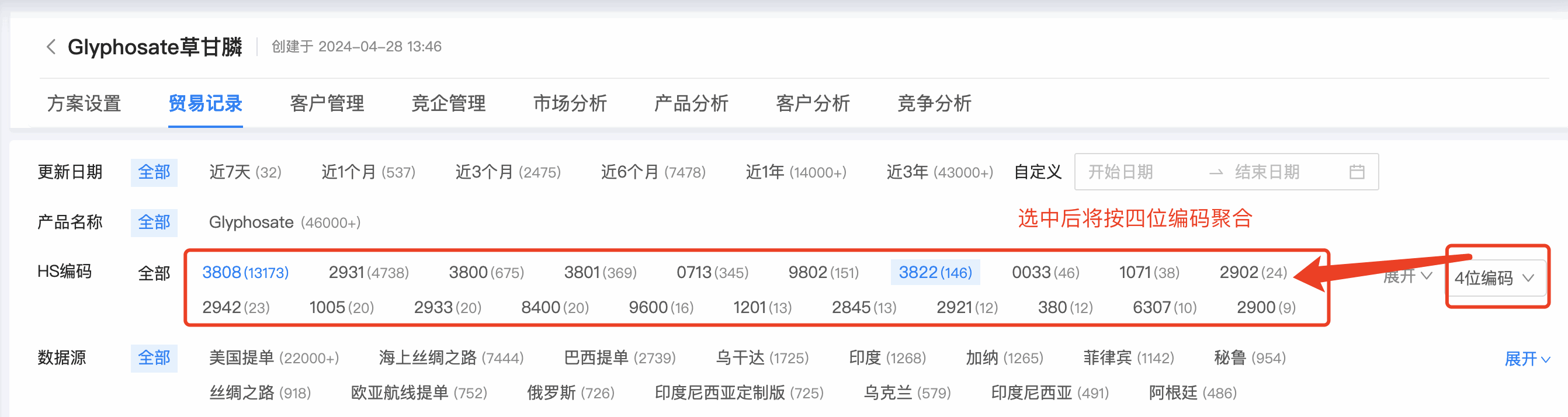 royal皇家88(集团) > 行业资讯 > royal皇家88(集团) 数据通产品更新——贸易记录可按照编码筛选