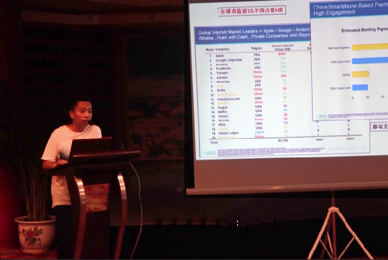 图为CEO庞景方发表讲话